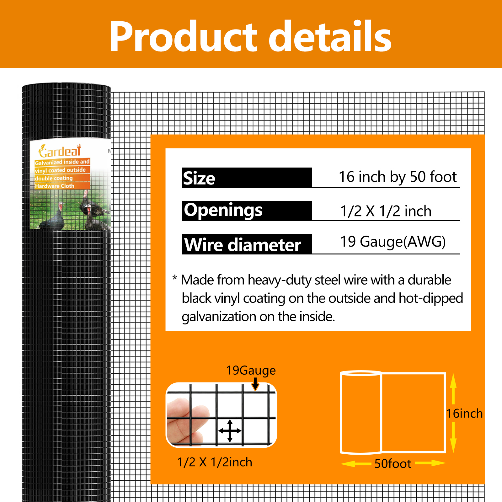 - Multifunctional use:Hardware cloth is suitable for chicken pen/coop fences, raised garden beds, screen mesh, rabbit/snake fences, tree guards, gutters, under eaves, soil sifters, gutter guards, flower beds, poultry enclosures, home decoration projects, handicraft making, etc. You can turn it into anything you want. But please note that whether its size and mesh size are what you need. If the sizes are not suitable, please go to the gardeal store and choose them again.