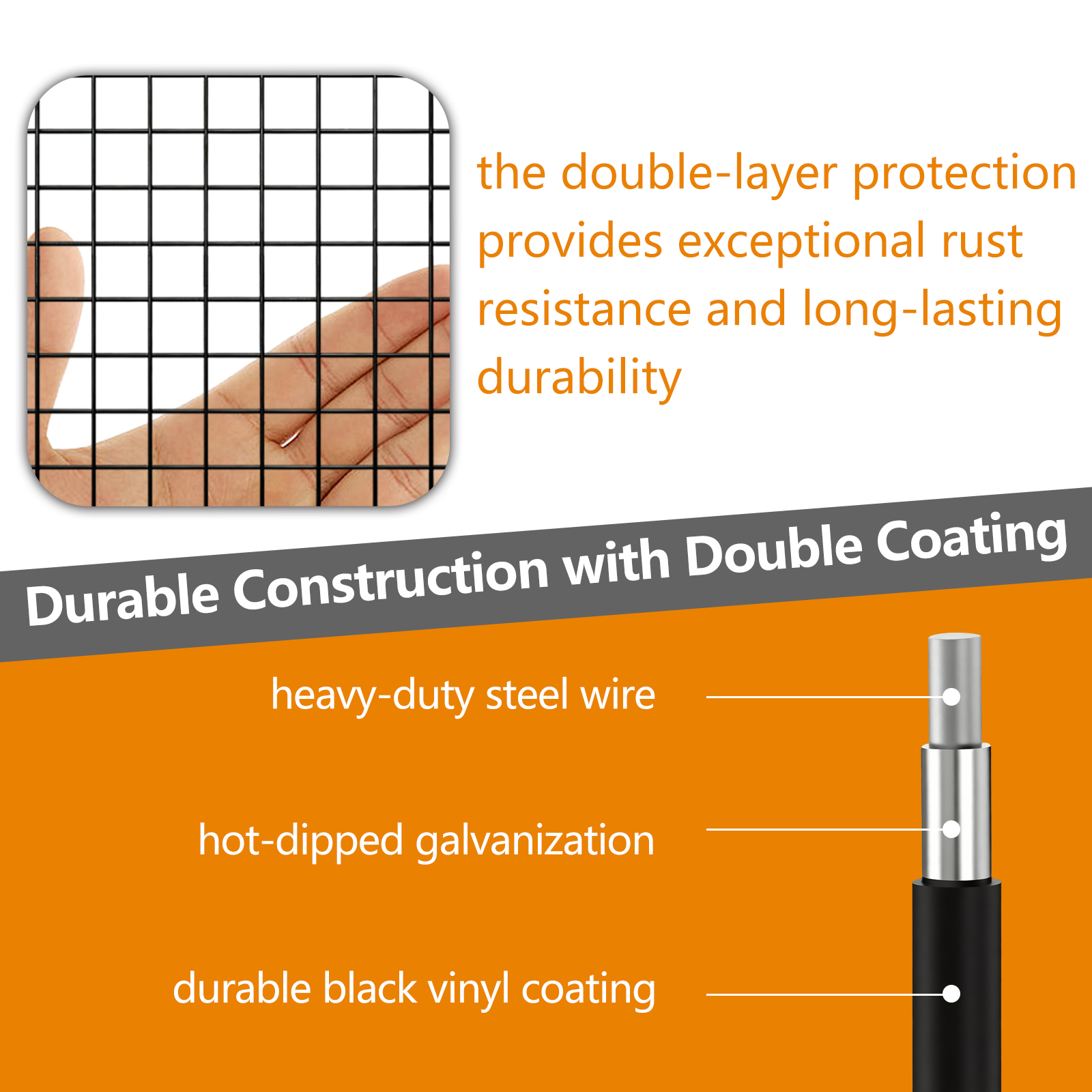 - Gardeal’s Galvanized Welded Cage adoptinghot-dip galvanized after welding process technology,double galvanizing process to ensure that all solder joints are coated with zinc,This process improves the corrosion resistance of the wire mesh roll, making it waterproof and rust resistant, sturdy and durable, long-term outdoor use is no problem.