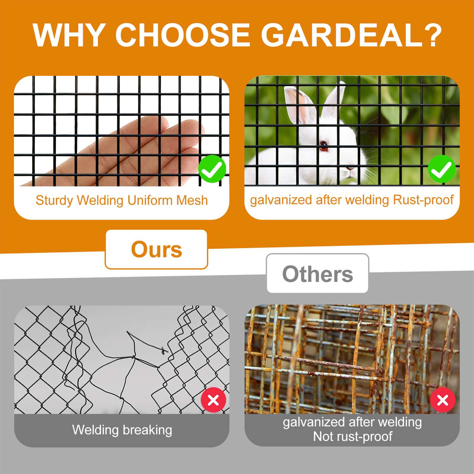 - Gardeal’s Galvanized Welded Cage adoptinghot-dip galvanized after welding process technology,double galvanizing process to ensure that all solder joints are coated with zinc,This process improves the corrosion resistance of the wire mesh roll, making it waterproof and rust resistant, sturdy and durable, long-term outdoor use is no problem.